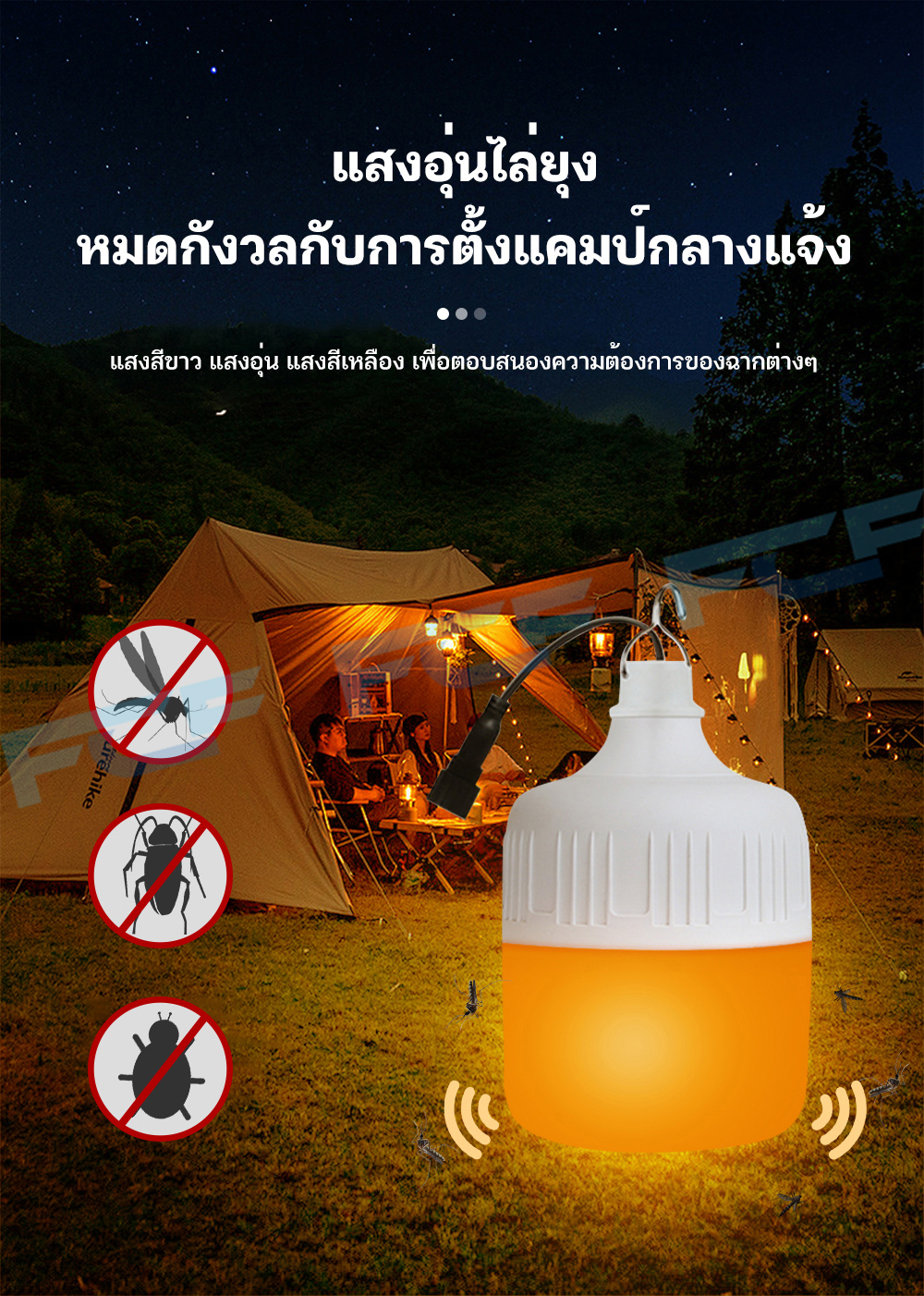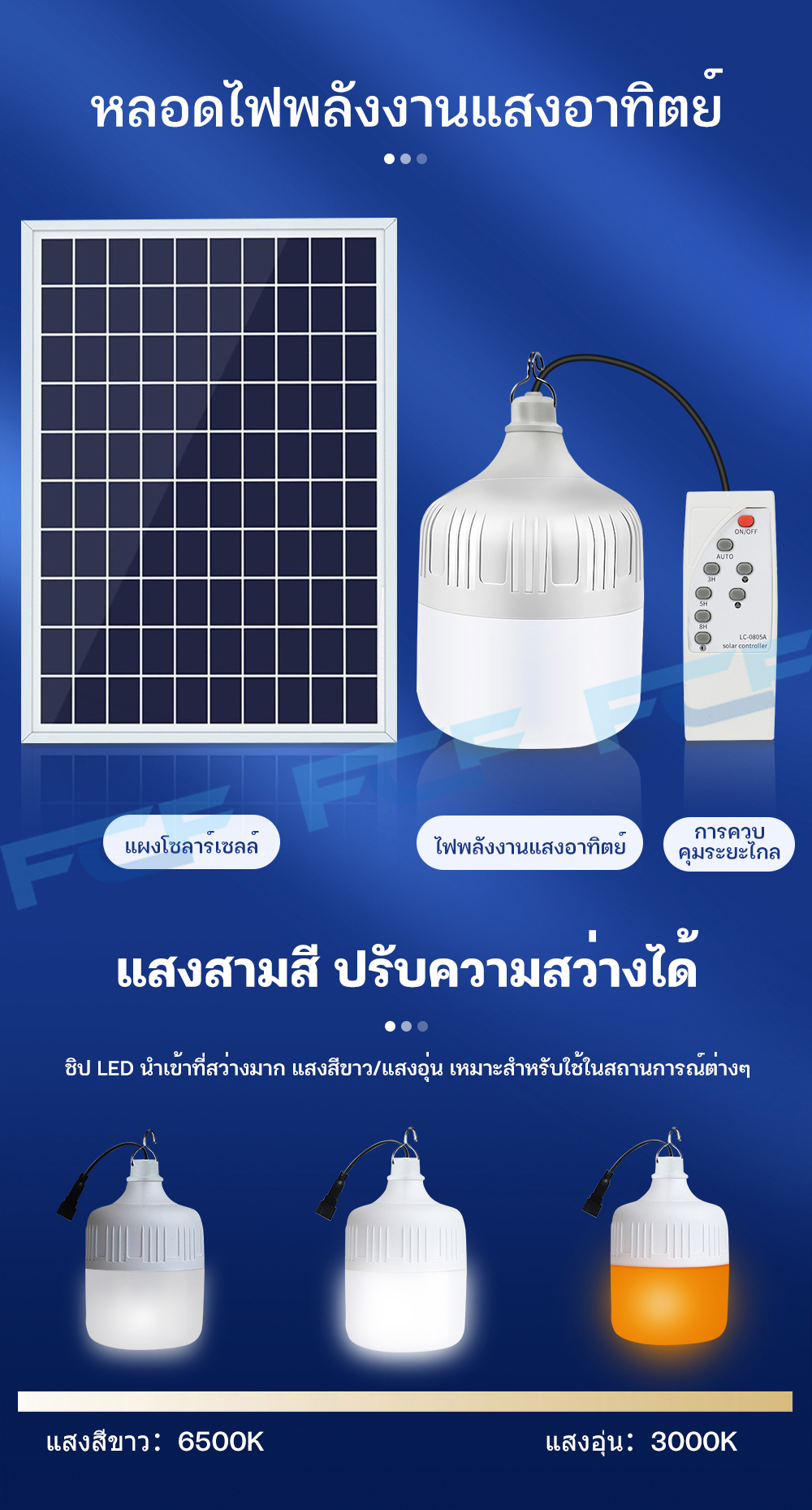 Trakool Store | FCF ซื้อ1แถม1 ไฟโซล่าเซลล์ 8000W หลอดไฟโซล่าเซลล์ LED ไฟตุ้ม3สี ไฟฉุกเฉิน ไฟตั้งแคมป์ พกพา แบตนาน72ชั่วโม กันน้ำกลางแจ้ง