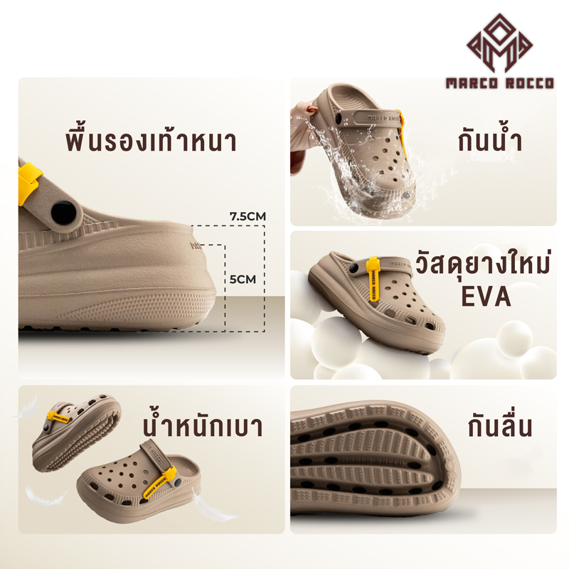 Trakool Store | Marco Rocco รองเท้าแตะแฟชั่นผู้หญิง พื้นหนา7.5cm กันลื่น ระบายอากาศได้ดี รองเท้าหัวโต รุ่นMR8026